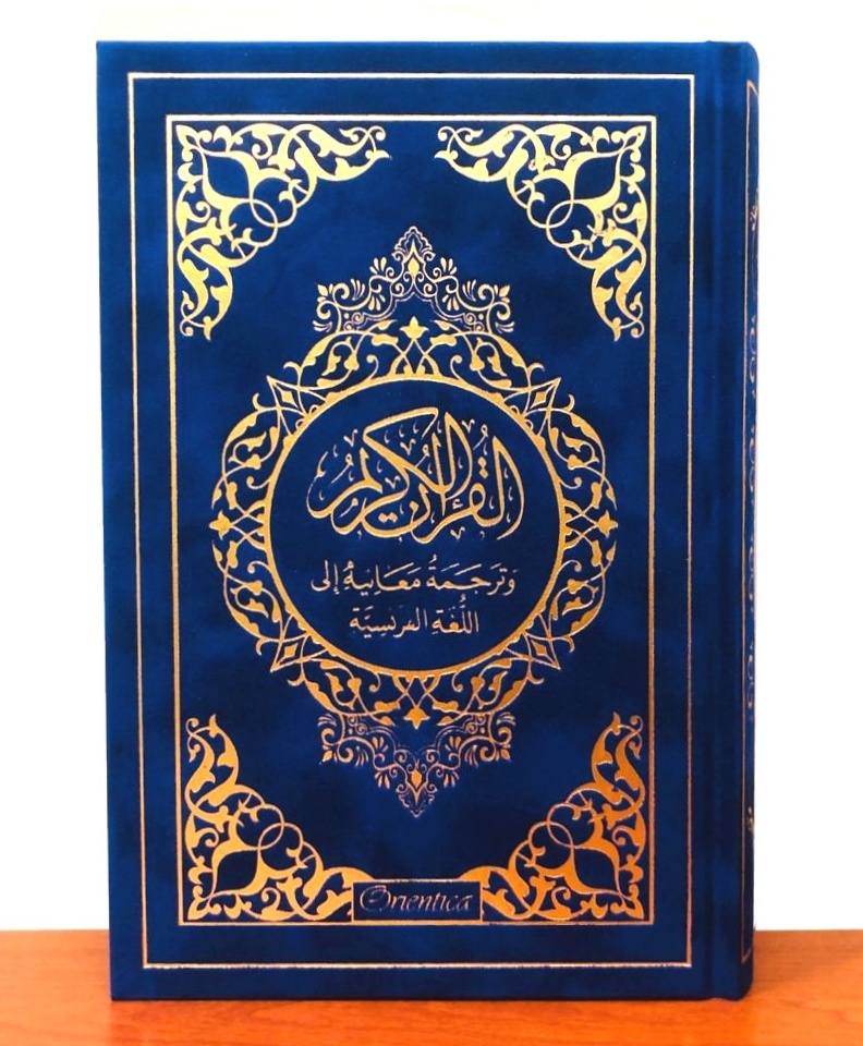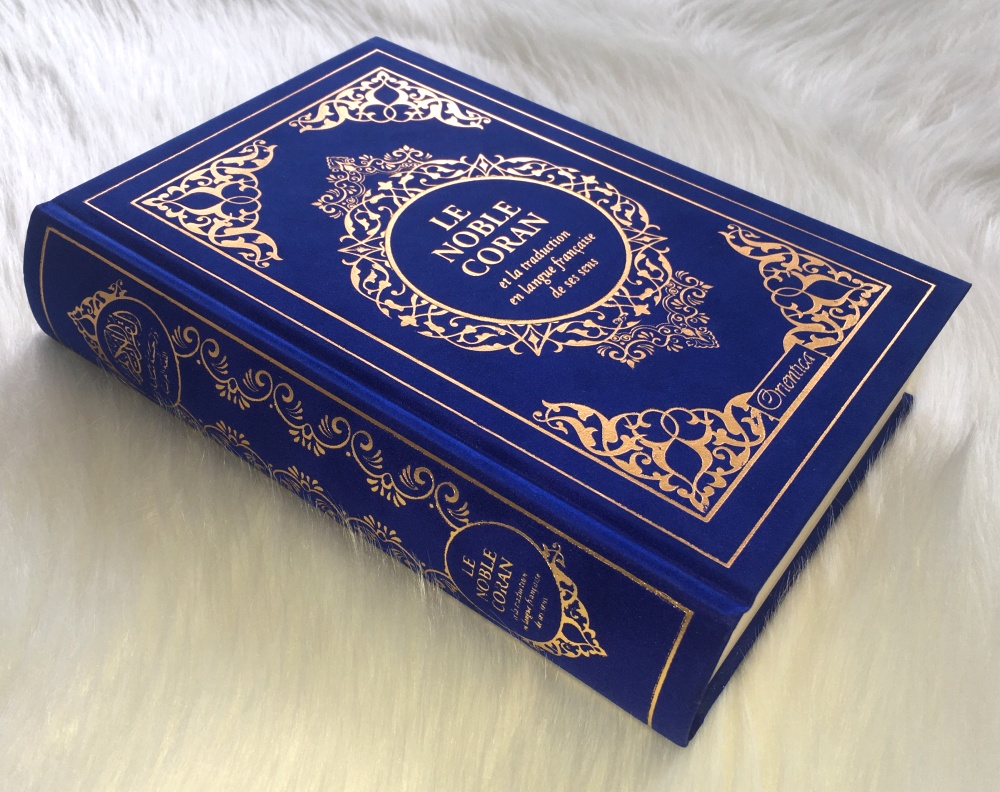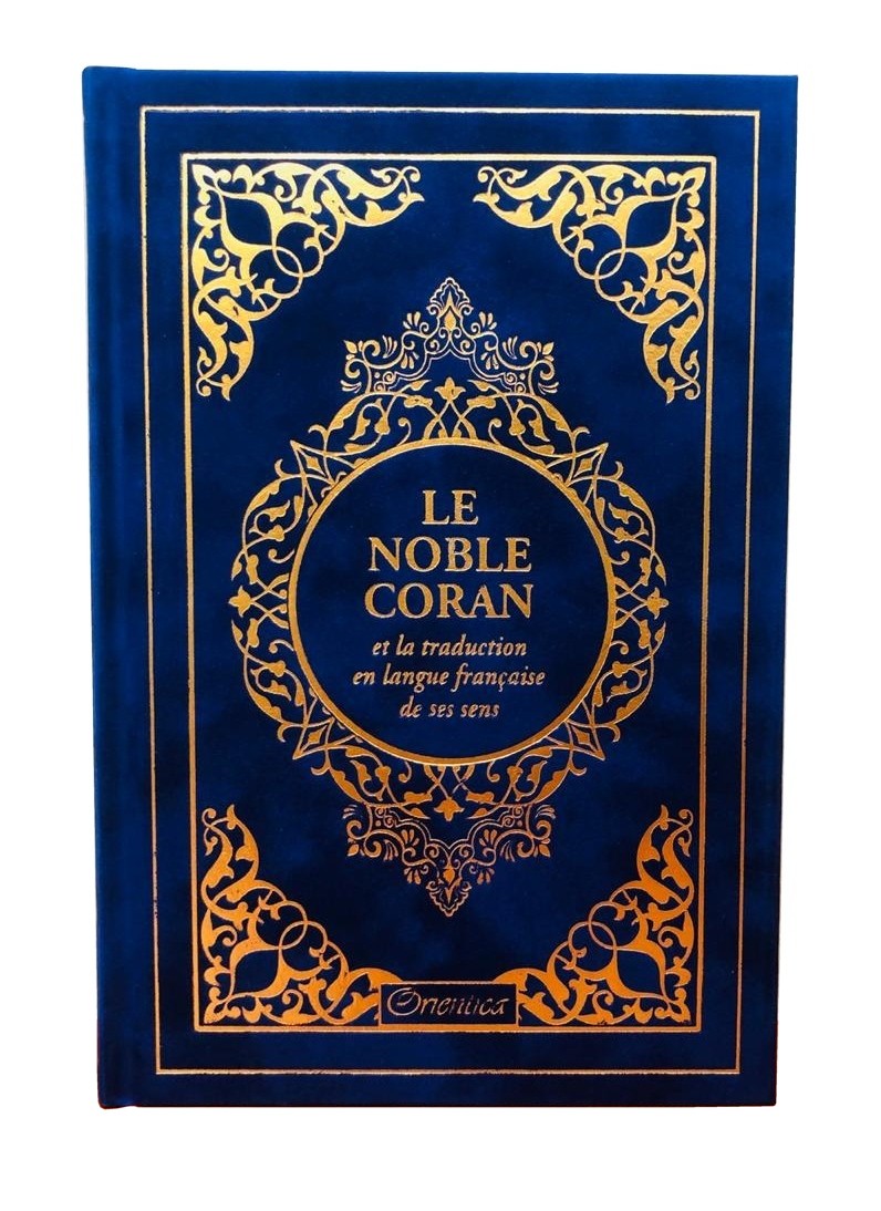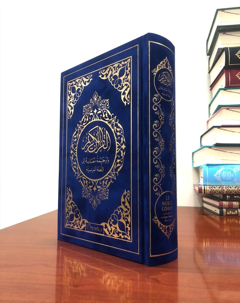 Le Noble Coran et la traduction en langue française de ses sens (bilingue français/arabe) - Edition de luxe couverture cartonnée en daim couleur Bleu dorée - REF. 28826 (24.90 €)