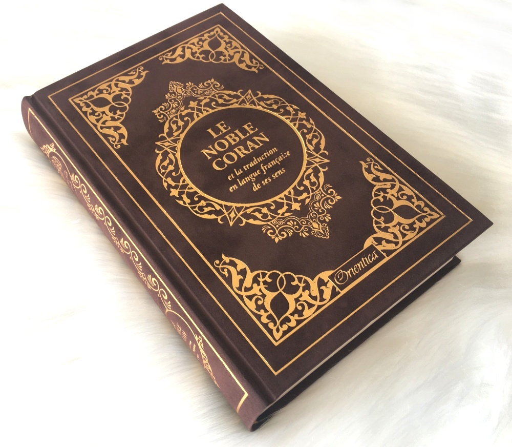 Le Noble Coran et la traduction en langue française de ses sens (bilingue français/arabe) - Edition de luxe couverture cartonnée en daim couleur Café (marron) dorée Livre Coup de coeur