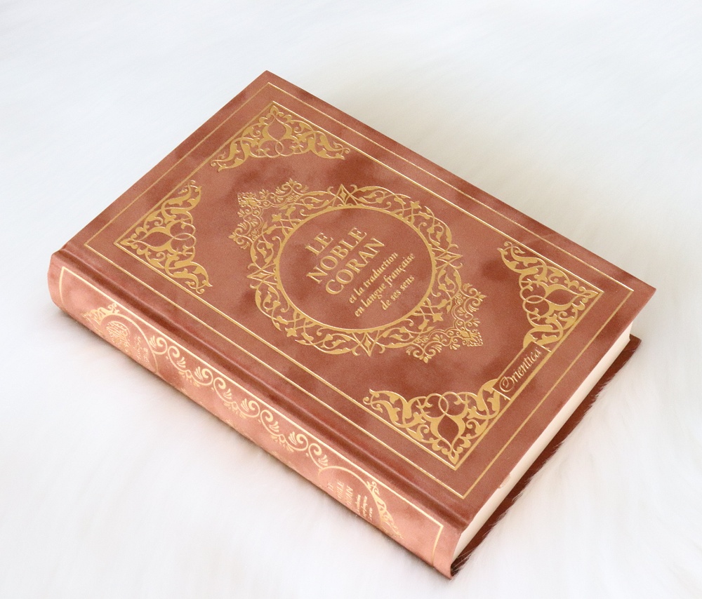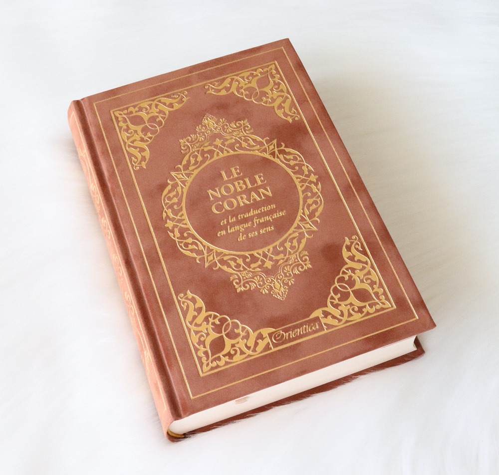 Le Noble Coran et la traduction en langue française de ses sens (bilingue français/arabe) - Edition de luxe couverture cartonnée en daim couleur Chamois ( Marron clair ) dorée Livre Coup de coeur
