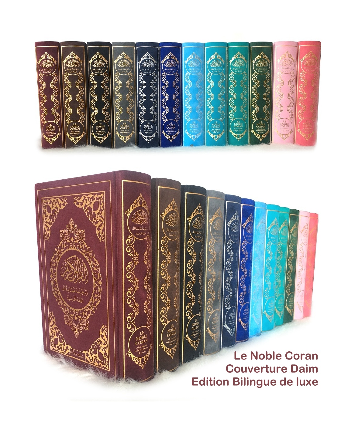 Ces Coran de luxe bilingues (français et arabe) ont une couverture en daim très doux et agréable... et un index sur la tranche permettant un accès direct au début de chaque sourate.