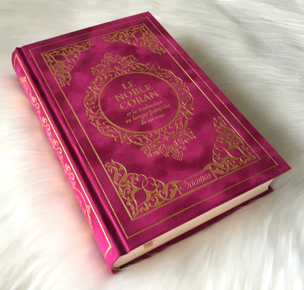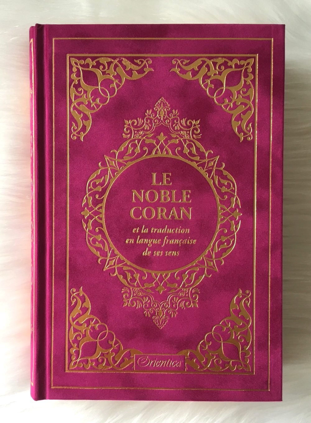 Le Noble Coran et la traduction en langue française de ses sens (bilingue français/arabe) - Edition de luxe couverture cartonnée en daim couleur Fuchsia dorée Livre Coup de coeur