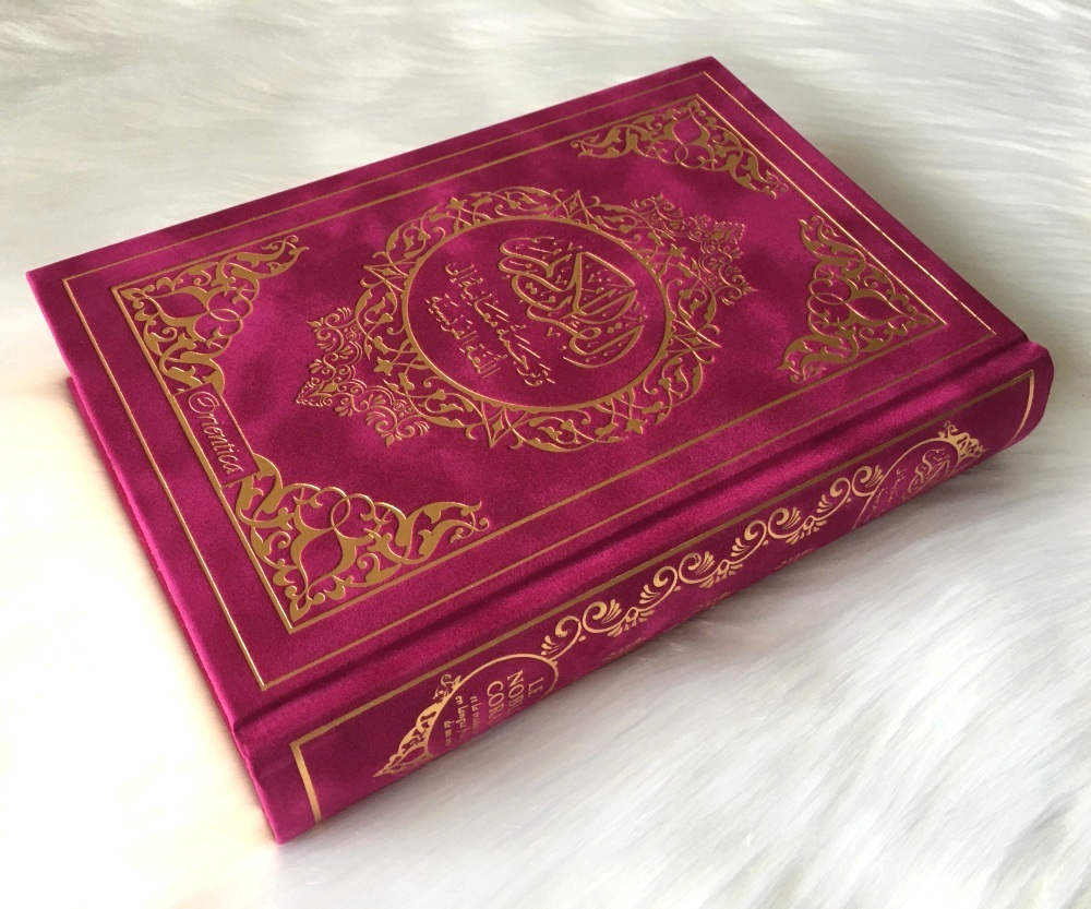 Le Noble Coran et la traduction en langue française de ses sens (bilingue français/arabe) - Edition de luxe couverture cartonnée en daim couleur Fuchsia dorée - REF. 28821 (24.90 €)