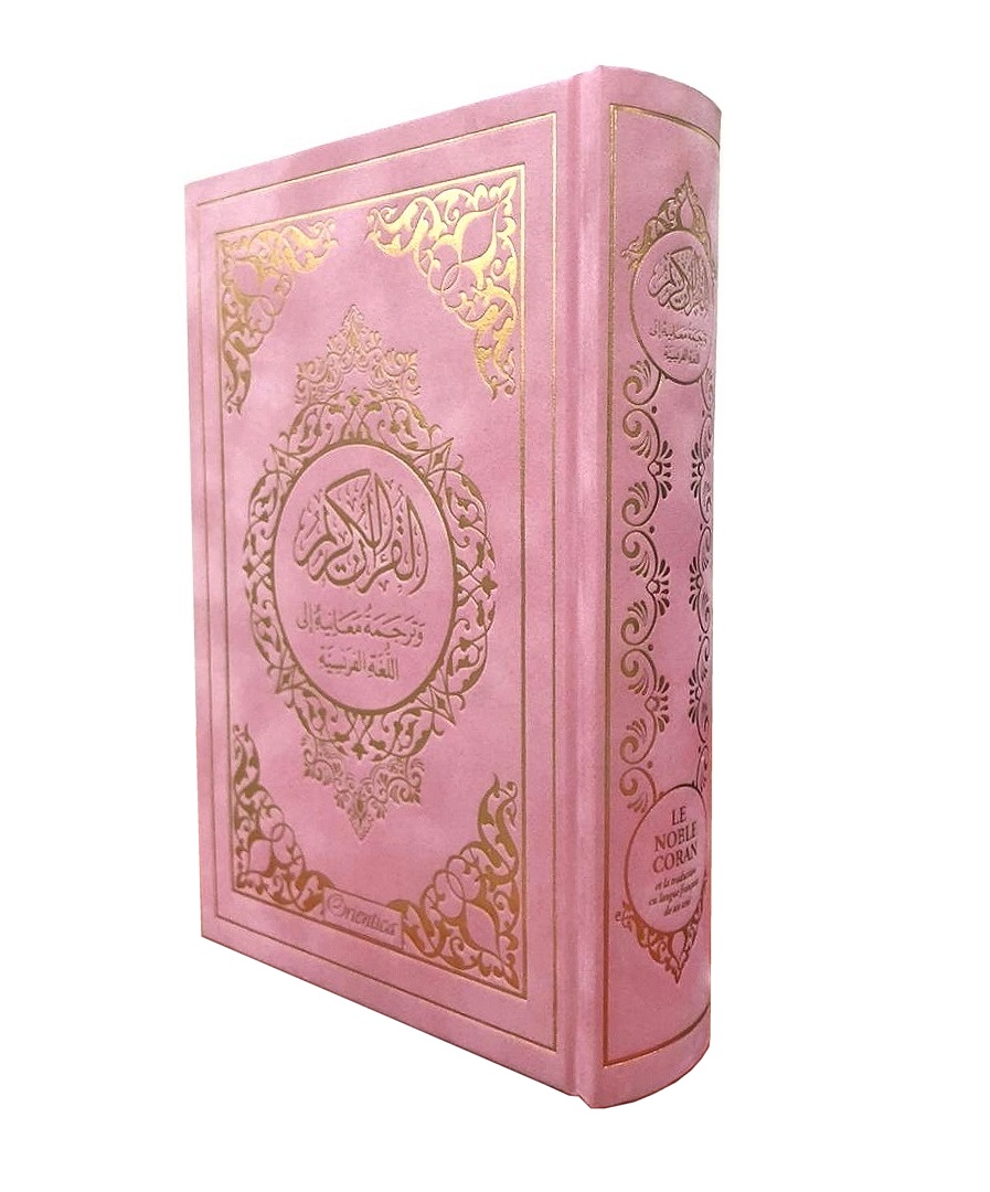 Le Noble Coran et la traduction en langue française de ses sens (bilingue français/arabe) - Edition de luxe couverture cartonnée en daim rose clair dorée avec index - REF. 28818 (24.90 €)