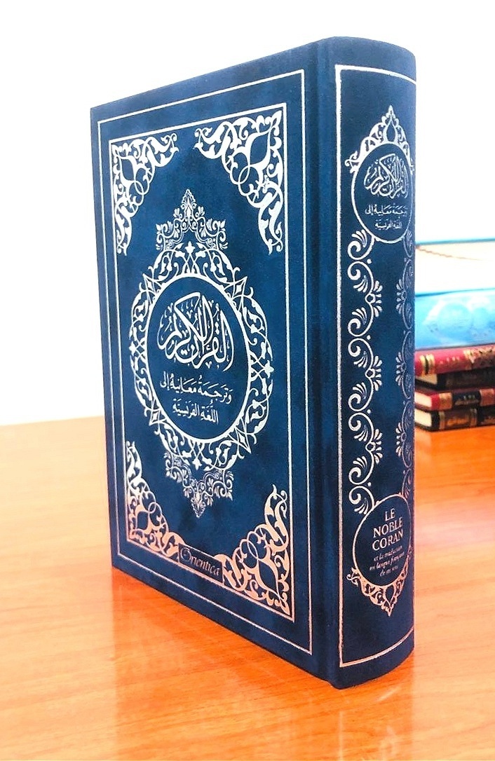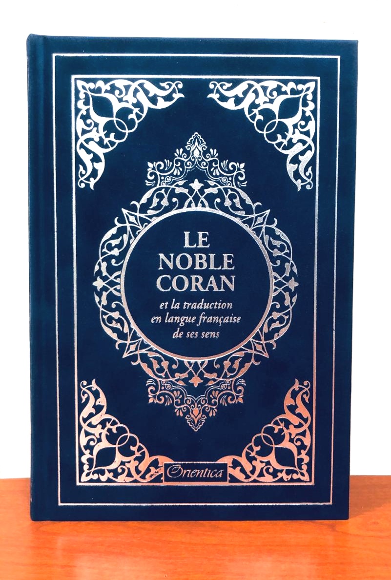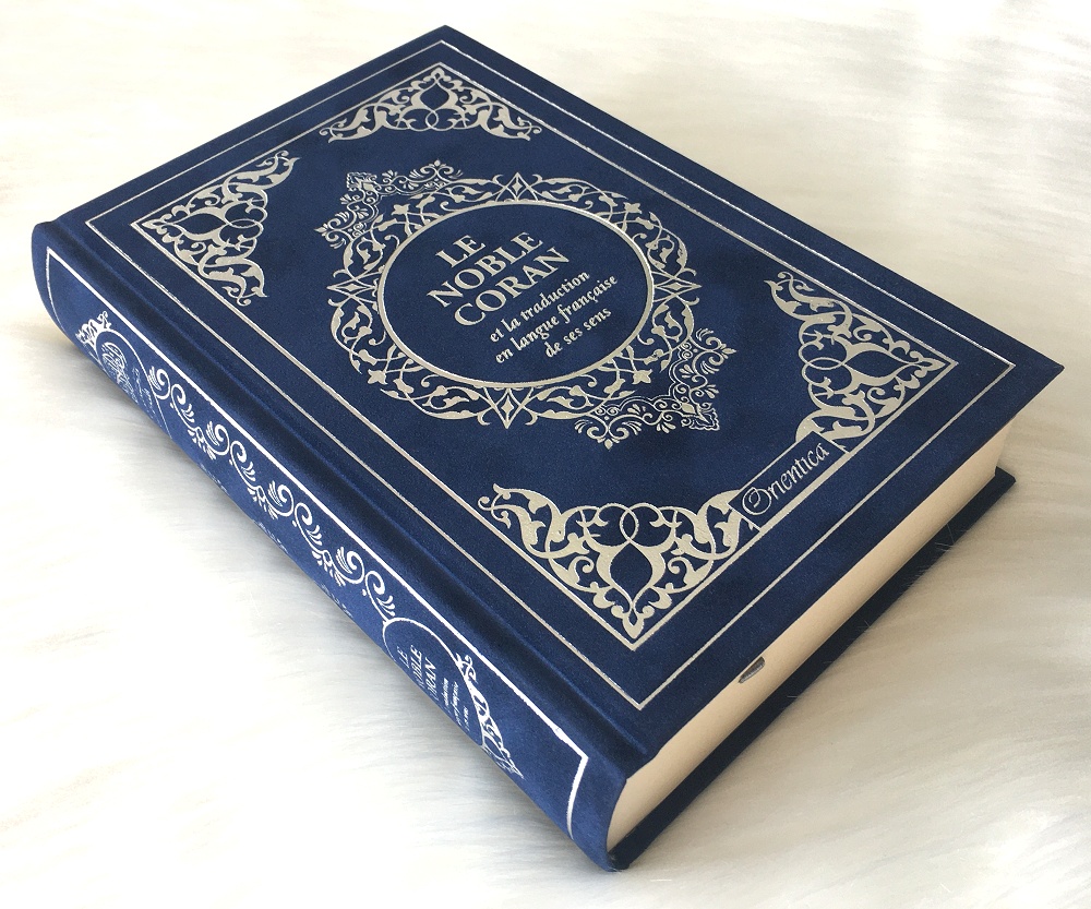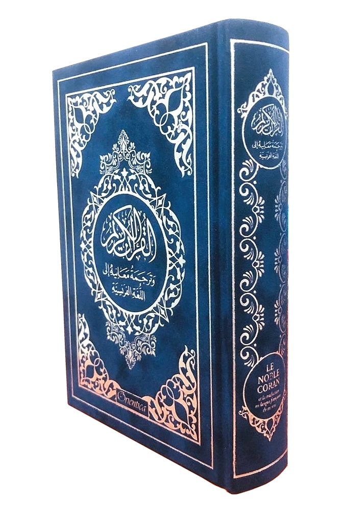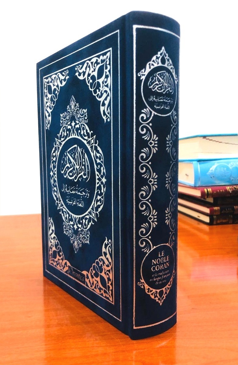 Le Noble Coran et la traduction en langue française de ses sens (bilingue français/arabe) - Edition de luxe couverture cartonnée en daim couleur Bleu dorée - REF. 28826 (24.90 €)