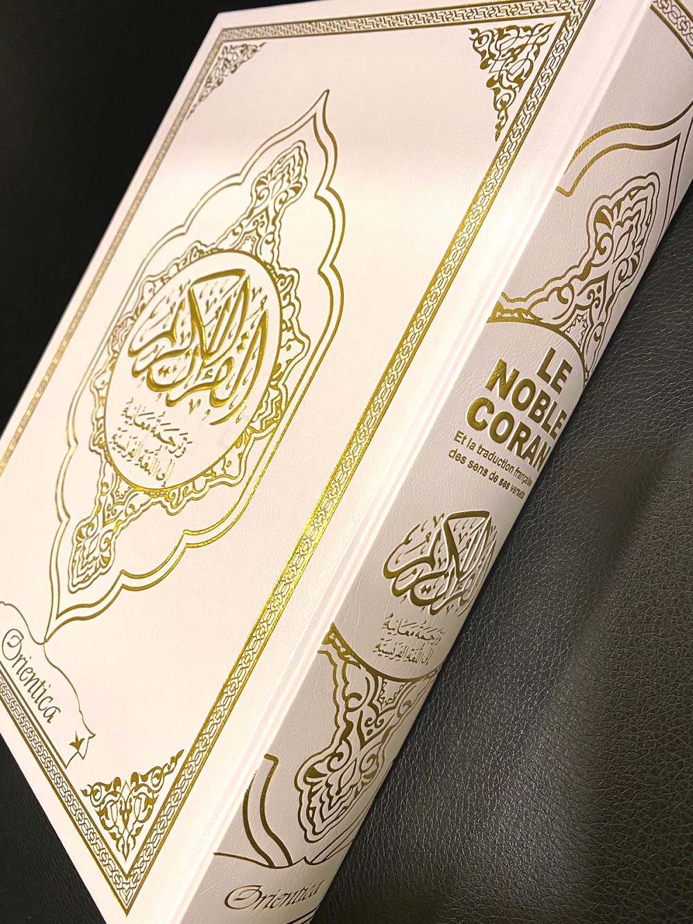 Le Saint Coran - Transcription phonétique et Traduction des sens en français - Blanc - Edition de luxe (Couverture cuir de couleur blanche dorée) - REF. 39425 (26.90 €) - En Promotion à 24.90 €