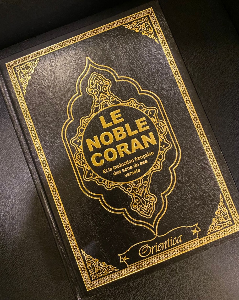 Le Noble Coran et la traduction française du sens de ses versets (bilingue français/arabe) - Grand format (21 x 28,50 cm) - Couverture rigide similicuir de luxe - Couleur Noir doré - REF. 36957 (35.00 €)