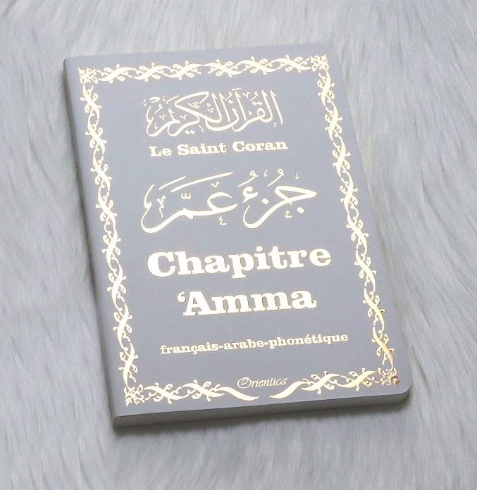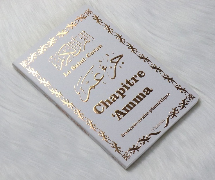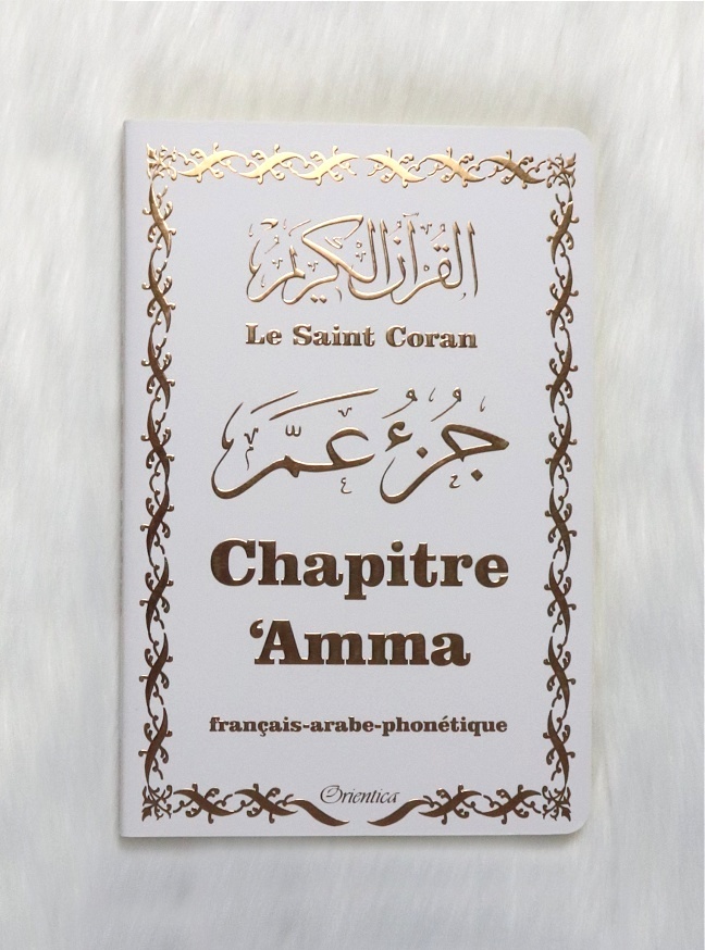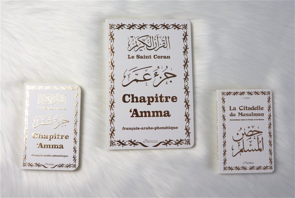 Couverture blanche dorée avec bords arrondis. Contient Juz' 'Ammâ complet : Hizb 'Amma et Hizb Sabbih avec toutes les petites sourates du Coran.