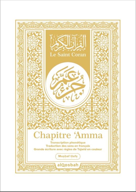 Découvrez nos nouveaux Coran Chapitre Amma (Jouz' 'Ammâ جزء عم) exceptionnels adaptés aux personnes non arabophones (ou débutants en arabe) désirant apprendre la lecture et la prononciation correcte du Saint Coran de façon simple et intuitive.