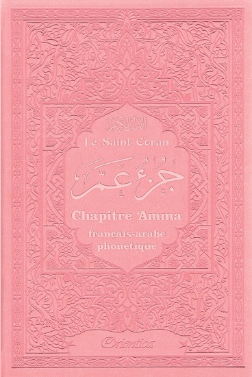Couverture rose pale. Contient Juz' 'Amâ complet : Hizb 'Amma et Hizb Sabih avec toutes les petites sourates du Coran.