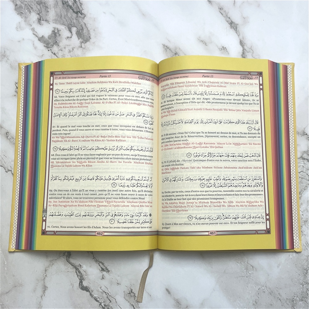 Le Saint Coran Rainbow (Arc-en-ciel) avec Transcription phonétique et Traduction des sens en français - Destiné à ceux qui ne sont pas encore initiés à la langue arabe.