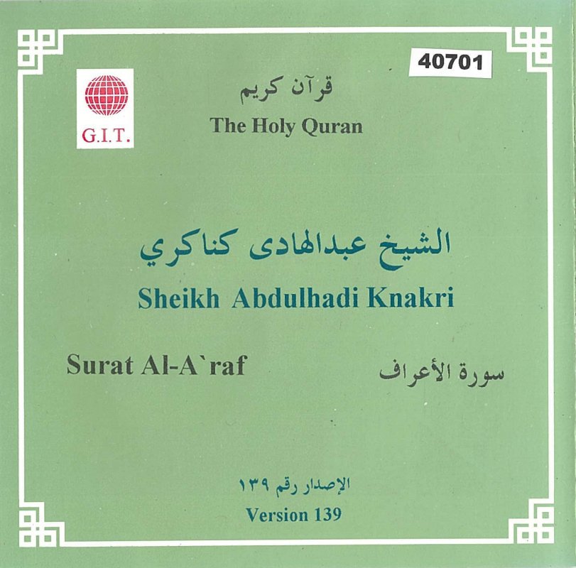 Sourate Al-A'araf récitée par Cheikh Abdelhadi Al-Kanakiri en CD audio.