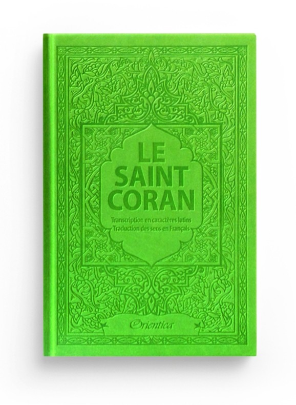 Le Saint Coran - Transcription phonetique (de l'arabe) et Traduction des sens en francais - Edition de luxe (Couverture Cuir Vert clair)