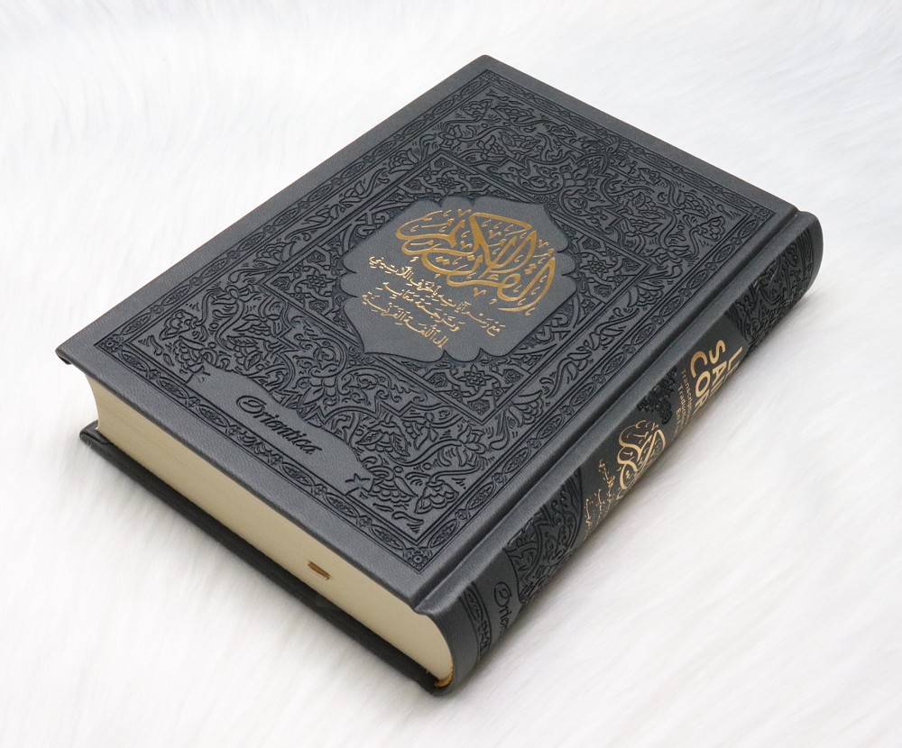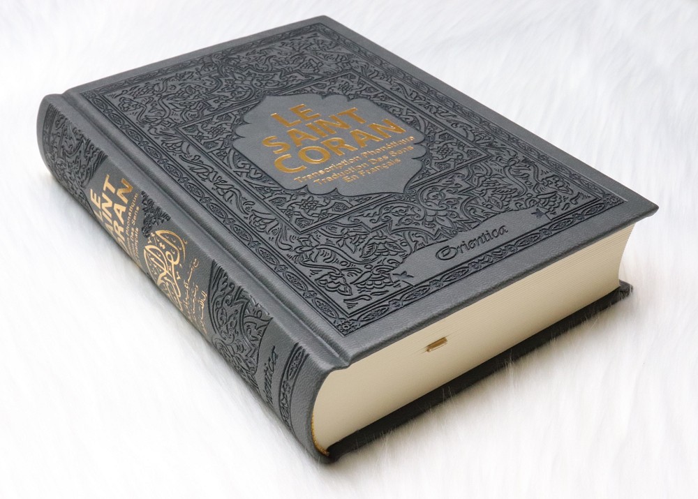 Le Saint Coran - Transcription phonétique de l'arabe et Traduction des sens en français - Edition de luxe (Couverture cuir de couleur Grise dorée) - REF. 36194 (26.90 €)