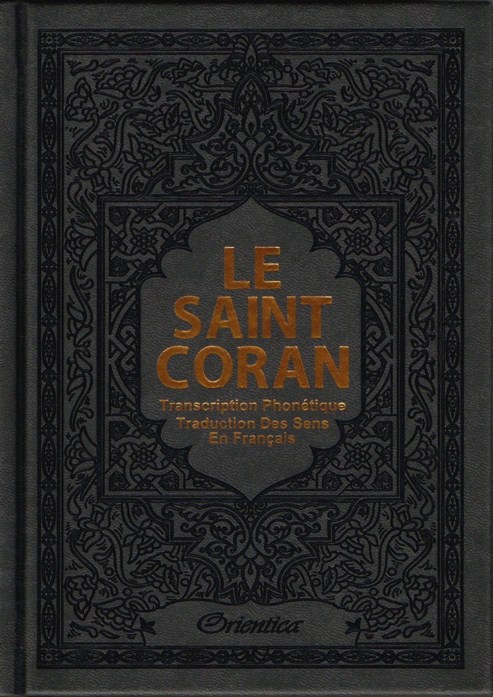 Le Saint Coran - Transcription phonetique de l'arabe et Traduction des sens en francais - Edition de luxe (Couverture cuir de couleur Grise doree)