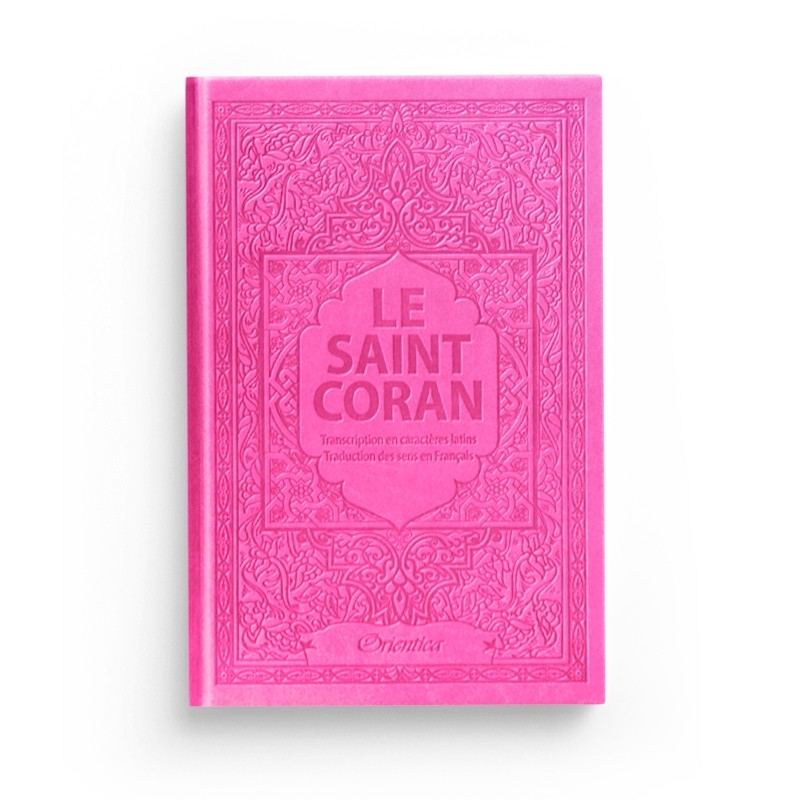 Le Saint Coran - Transcription phonetique (de l'arabe) et Traduction des sens en francais - Edition de luxe - Couverture cuir rose fushia