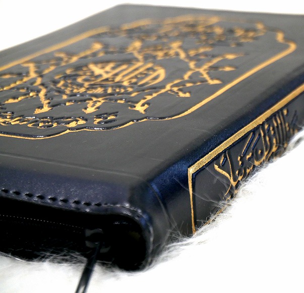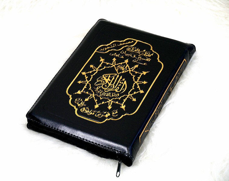 Le Saint Coran en version pochette à fermeture Zip de couleur noir avec règles de lecture en couleur (Ahkâm at-Tajwîd). Idéal pour emporter partout.