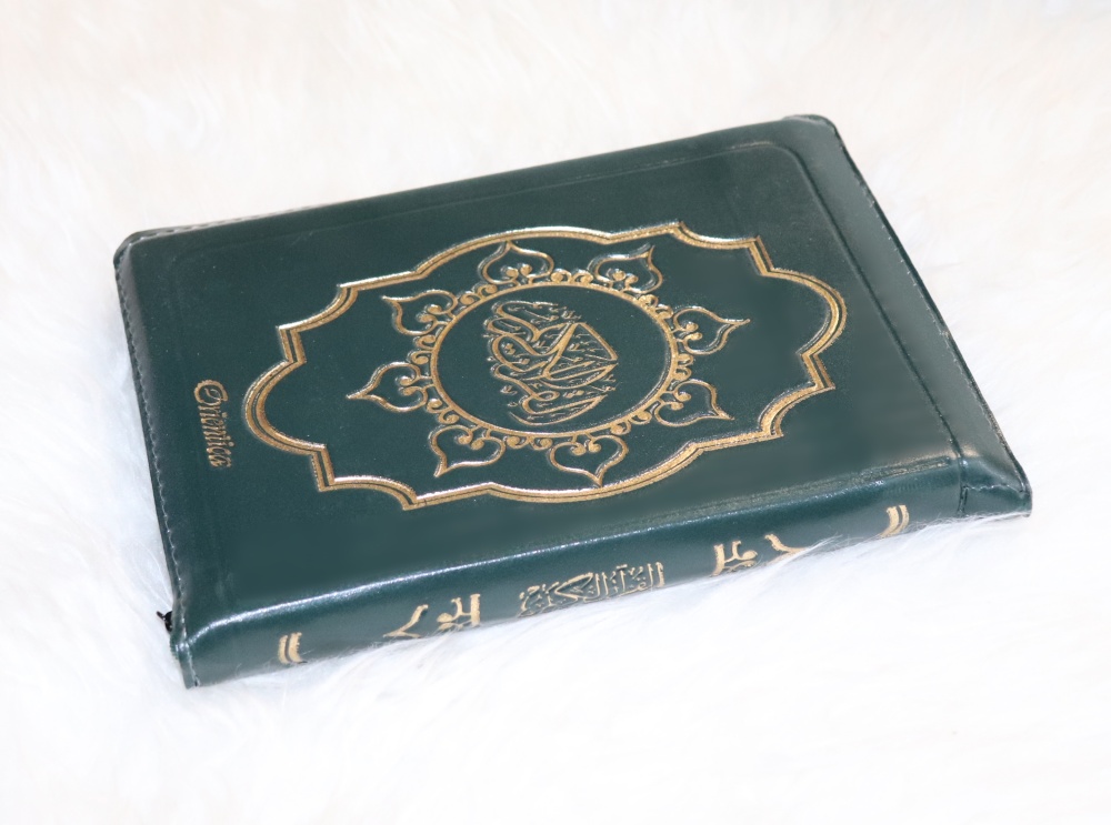 Le Saint Coran en langue arabe avec fermeture Zip (Format 14x20cm) - Couleur Vert sapin