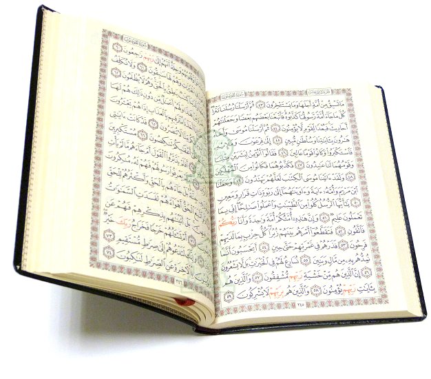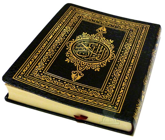Saint Coran en langue arabe version Hafs. Couverture similicuir dorée flexible avec bords arrondis. Impression sur papier haute qualité en deux couleurs.