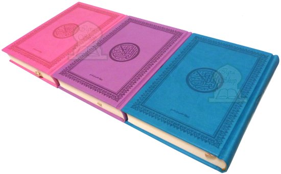 Pack de 5 Corans de luxe en 5 couleurs différentes : Le Saint Coran (français - arabe - phonétique) - Couverture simili-cuir (Mauve, Vert, Bleu, Rose pâle, Rose) - REF. 15901 (129.50 €) - En Promotion à 95.00 €