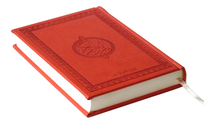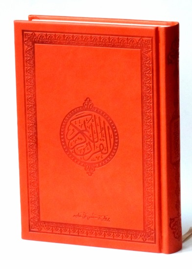 Coran de luxe avec couverture Orange de type cuir, très doux au toucher, agréable à manier et ne ramasse pas la poussière.