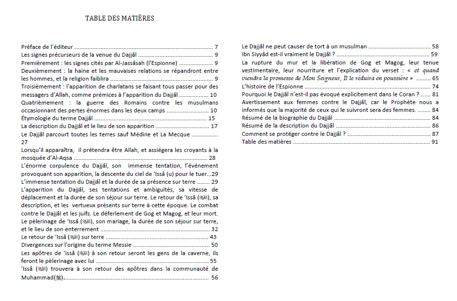 Ce livre est une compilation des récits prophétiques et des paroles des savants de l'Islam concernant le faux messie.