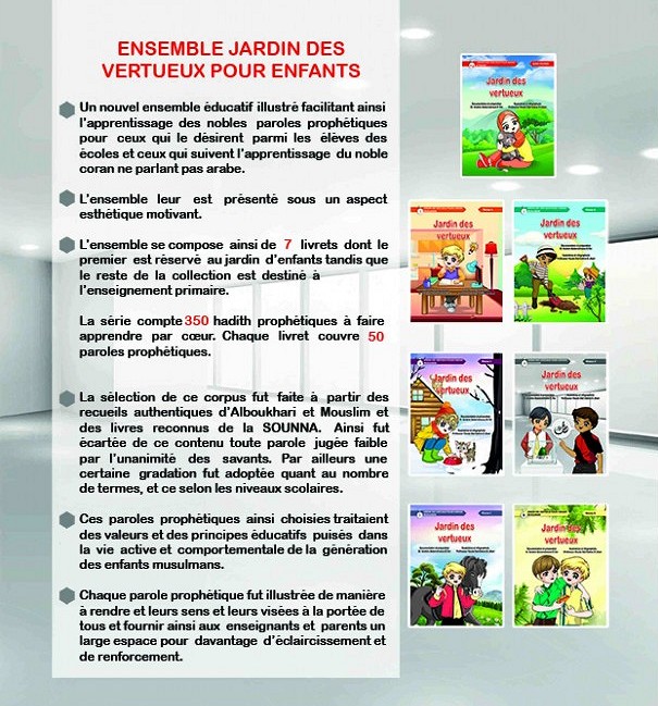 Un nouvel ensemble éducatif illustré facilitant ainsi l'apprentissage des nobles paroles prophétiques pour ceux qui le désirent parmi les élèves des écoles et ceux qui suivent l’apprentissage du noble coran ne parlant pas arabe. L'ensemble leur est présenté sous un aspect esthétique motivant. L'ensemble se compose ainsi de 7 livrets dont le premier est réservé au jardin d’enfants tandis que — le reste de la collection est destiné à l’enseignement primaire.