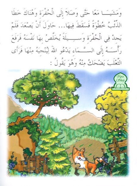 Conte éducatif en langue arabe vocalisée relatant l'aventure de deux animaux connus pour leurs ruses. Histoire pleine de morales islamiques. Livre en couleur illustré par de beaux dessins.