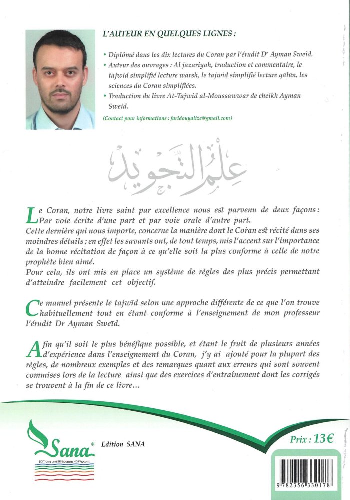 Afin qu'il soit le plus bénéfique possible, et étant le fruit de plusieurs années d'expérience dans l'enseignement du Coran, j'y ai ajouté pour la plupart des règles, de nombreux exemples et des remarques quant aux erreurs qui sont souvent commises lors de la lecture ainsi que des exercices d'entraînement dont les corrigés se trouvent à la fin de ce livre...