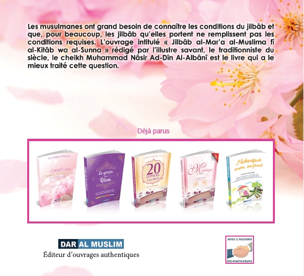 Les musulmanes ont grand besoin de connaître les conditions du jilbâb et que, pour beaucoup, les jilbâb qu'elles portent ne remplissent pas les conditions requises. L'ouvrage intitulé "Jilbâb al Mar'a al-Muslima fî al-Kitâb wa al-Sunna" rédigé par l'illustre savant, le cheikh Muhammed Nâsir Ad-Dîn Al-Albânî est le livre qui a le mieux traité la question.