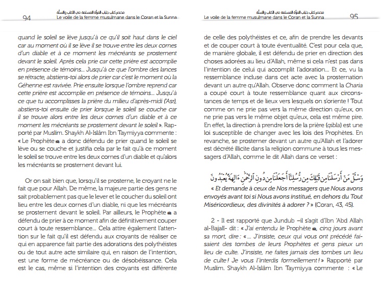 Livre en langue française, les versets coraniques sont également cités en langue arabe.