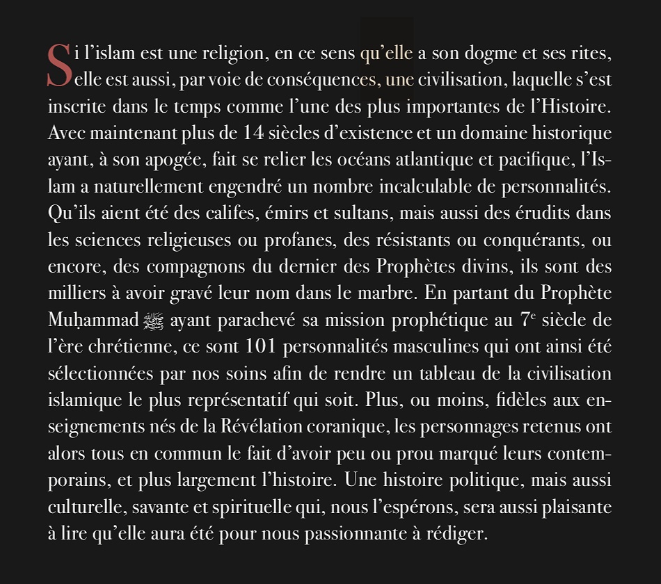 Du Prophète Muḥammad (paix et salut sur lui) à l’érudit andalou Ibn Ḥazm, du compagnon Abū Ayyūb al-Anṣārī au résistant Shāmil, du savant du Ḥadīth al-Bukhārī au conquérant de Constantinople, Meḥmed II… Découvrez le récit de vie de certains des personnages les plus marquants de l’ère islamique.