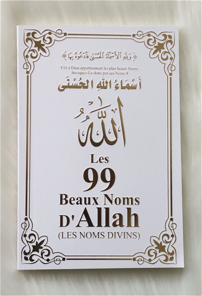 Les 99 Beaux Noms d'Allah (arabe/francais/phonetique) - Blanc dore
