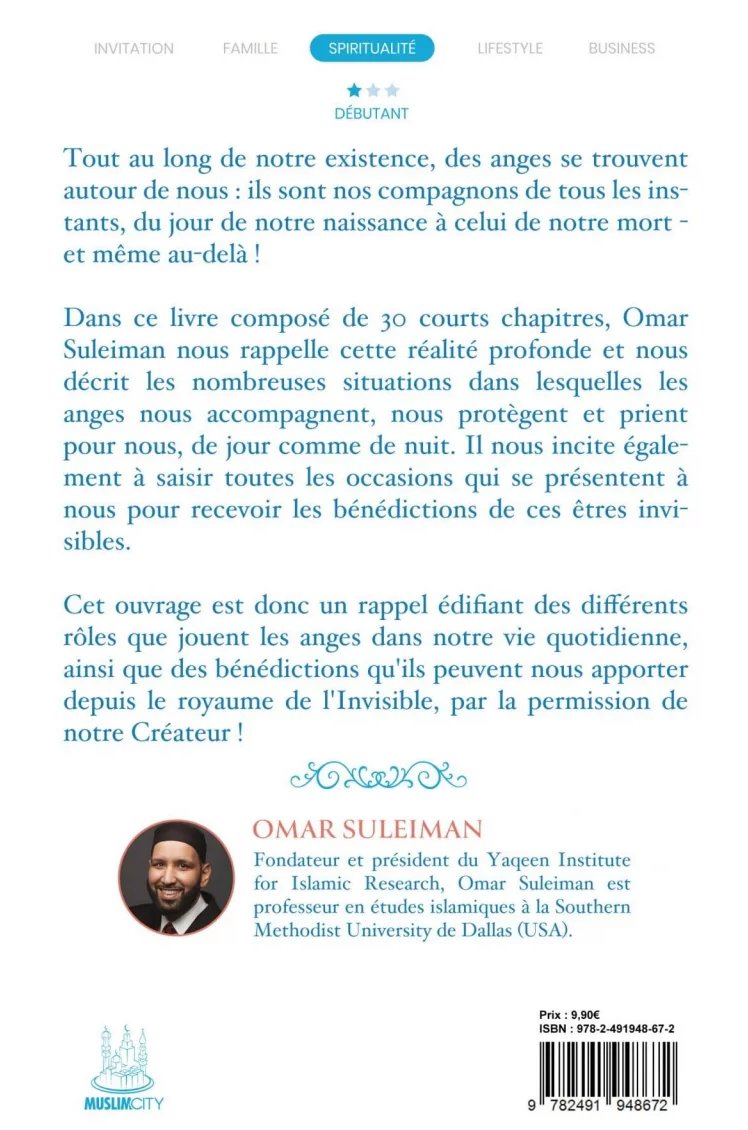 Dans ce livre composé de 30 courts chapitres, Omar Suleiman nous rappelle cette réalité profonde et nous décrit les nombreuses situations dans lesquelles les anges nous accompagnent, nous protègent et prient pour nous, de jour comme de nuit. Il nous incite également à saisir toutes les occasions qui se présentent à nous pour recevoir les bénédictions de ces êtres invisibles.