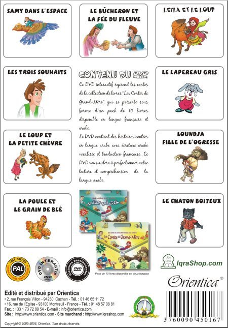 Ce DVD interactif reprend les contes de la collection de livres “Les Contes de Grand-Mère” qui se présente sous forme d’un pack de 10 livres disponible en langue française et arabe.
