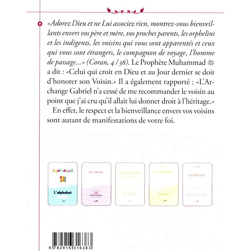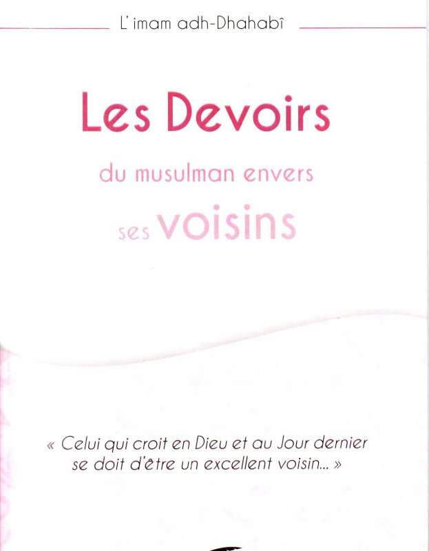 Dans ce livret, l'Imam Adh-Dhahabi se consacre entièrement aux droits du voisin en se basant exclusivement sur les sources fondamentales de l'Islam, le Coran et la Sunna. Ce petit livre présente de manière simple et accessible l'essentiel des Hadiths authentiques sur la question du voisinage, soulignant l'importance pour tout fidèle musulman de respecter, d'honorer et de supporter ses voisins, qu'ils soient musulmans ou non.