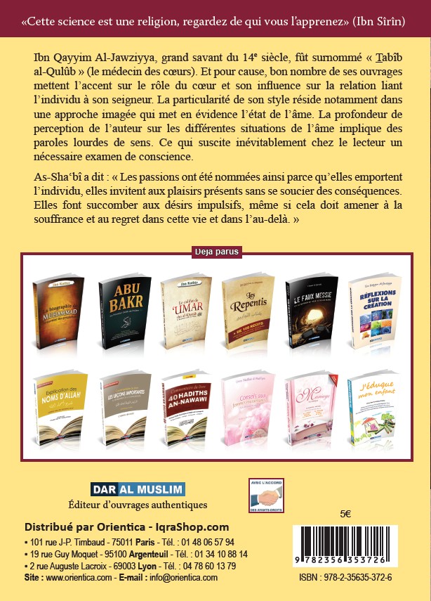 Ibn Al-Qayyim est un auteur dont les ouvrages sont incontournables pour quiconque souhaite cheminer vers une éducation spirituelle digne de ce nom. Aussi, l'ouvrage que nous vous présentons est une compilation des paroles de l'imam et s'inscrit tout à fait dans ce cadre.