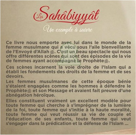 Ce livre nous transporte dans le monde de LA femme musulmane qui a vécu sous le regard bienveillant de l'Envoyé d'Allah. C'est un beau spectacle que nous offre cet ouvrage ou sont évoqués les épisodes de la vie de femmes ayant accompagné le Prophète. Ces évocations s'inscrivent dans les fondements des droits et devoirs de la femme.