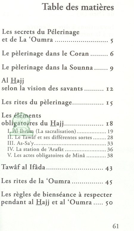 Le sommaire des oeuvres de la 'Oumra et du Hadj - REF. 22234 (3.50 €)
