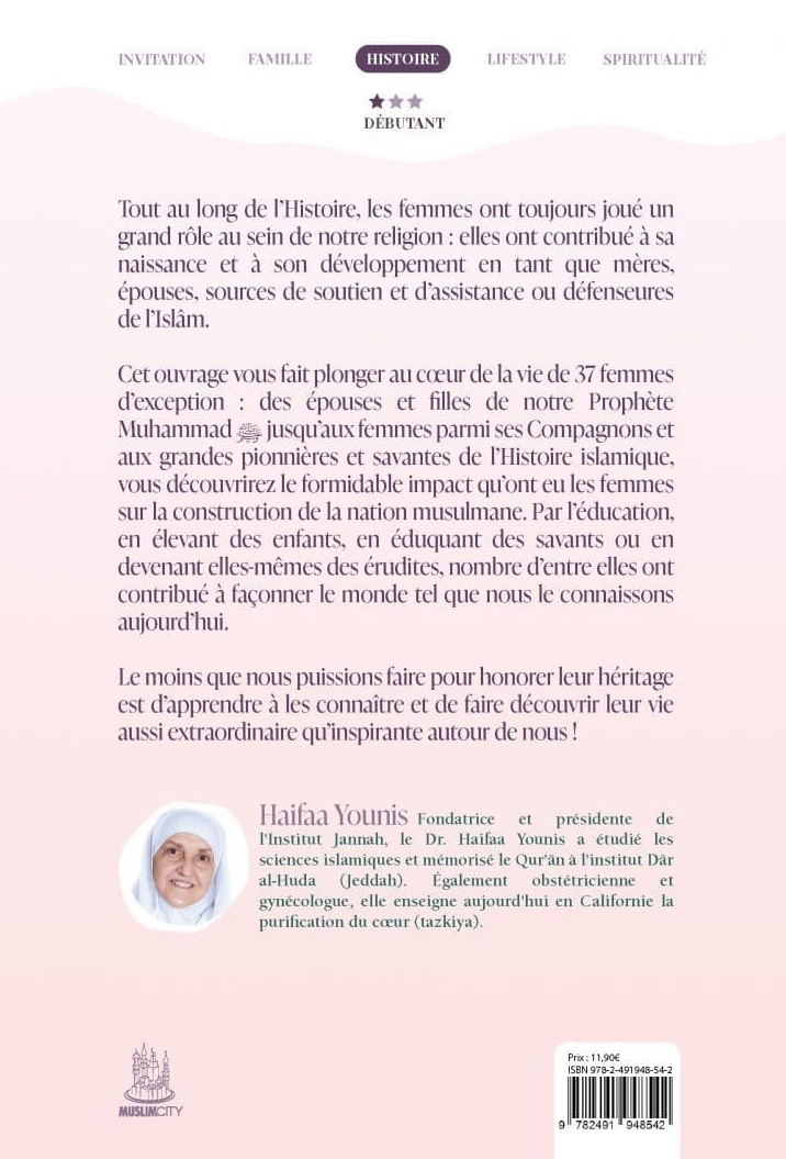Cet ouvrage nous plonge au cœur de la vie de 37 femmes d’exception : des épouses et filles de notre Prophète Muhammad (paix et salut sur lui) jusqu’aux femmes parmi ses Compagnons et aux grandes pionnières et savantes de l’Histoire islamique.Nous découvrons le formidable impact qu’ont eu les femmes sur la construction de la nation musulmane. Par l’éducation, en élevant les enfants, en éduquant des savants ou en devenant elles-mêmes des érudites,elles ont contribué à façonner le monde tel que nous le connaissons aujourd’hui.