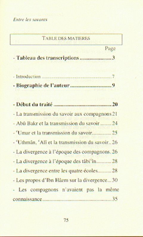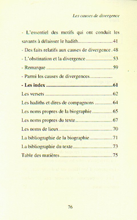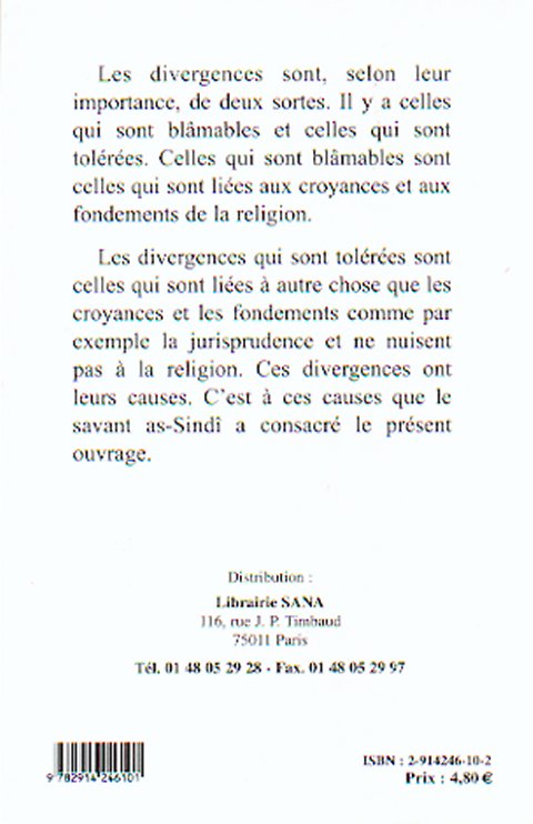 Les divergences qui sont tolérées sont celles qui sont liées à autre chose que les croyances et les fondements comme par exemple la jurisprudence et ne nuisent pas à la religion. Ces divergences ont leurs causes. C'est à ces causes que le savant as-Sindî a consacré le présent ouvrage.