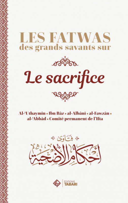Le livre « Les Fatwas des grands savants sur le sacrifice » compile les enseignements des plus grands savants contemporains de l’islam sur les règles du sacrifice rituel (Udhiyya). Publié par les Éditions Tabari, cet ouvrage rassemble les fatwas de Cheikh Ibn Bâz, Cheikh al-‘Uthaymîn, Cheikh al-Albânî, Cheikh al-Fawzân, Cheikh al-‘Abbâd et du Comité permanent de l’Iftâ.