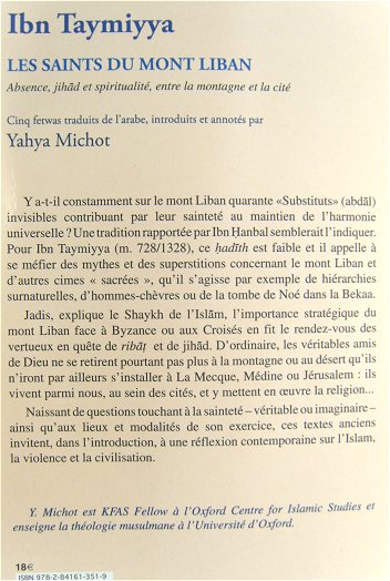 Les saints du mont Liban : absence, jihad et spiritualité, entre la montagne et la cité - REF. 7523 (18.00 €) |