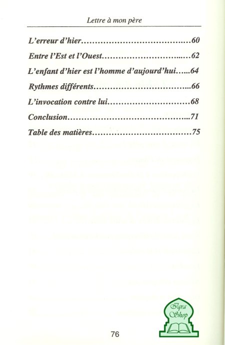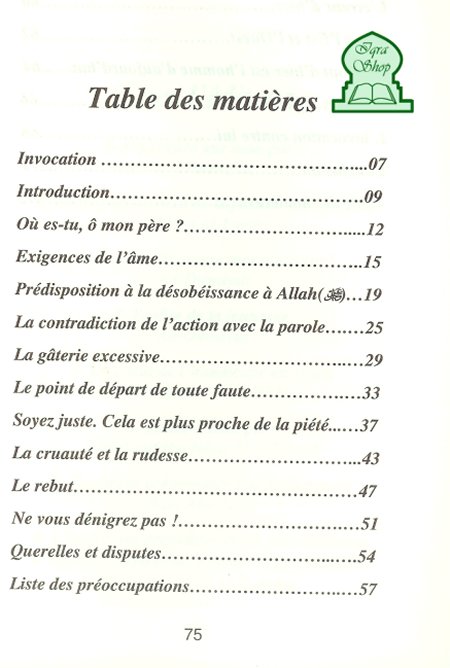 Accessoires divers - Alimentation Halal - Apprentissage anglais - Apprentissage arabe - Apprentissage français - Apprentissage langues - Art & Culture - Artisanat & décoration - Beauté, Soins naturels - Bien-être - Biographies - Calligraphie - Chants (Nachids) - Compagnons - Comprendre l'Islam - Contes & histoires - Cours & Conférences - Cuisine - Culture berbère - Da'wa (Prédication) - Dicos & encyclopédies - Divers - Dogme ('Aqîda) - Economie & finance - Education - Electronique - Enfants - Ethique - Exhortation - Femme - Fondements du droit - Hadiths - Histoire & civilisations - Histoires du Coran - Idées Cadeaux - Informatique - Initiation à l’Islam - Interprétation rêves - Invocations (dou'â) - Islam & laïcité - Islam & Occident - Islam & Sciences - Islam contemporain - Jeûne (Ramadan) - Jeunesse - Jurisprudence - Littérature & poésie - Ludoéducatif - Mariage & Couples - Monde arabe - Mystique & Soufisme - Paradis - Enfer - Mort - Pèlerinage & ‘Omra - Philosophie - Politique & Géopol. - Pratique religieuse - Prénoms - Prêt-à-porter Femmes - Prêt-à-porter Hommes - Prophètes - Religions du Livre - Revues & Guides - Roqya & protection - Saint Coran - Santé & Diététique - Sciences du Coran - Sciences du Hadith - Société & Traditions - Sounna du Prophète - Spiritualité - Tafsîr (Exégèse) - Tajwîd (Règles) - Tourisme - Vie du Prophète saw - Zakat & aumône