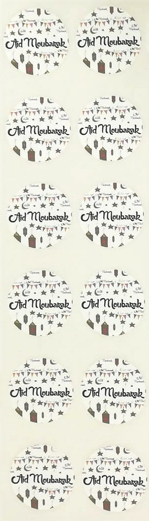 Lot de 24 autocollants "Aïd Moubarak" bilingue (français/arabe) pour cadeau musulman - Stickers autocollants Eid Mubarak ronds (4 cm) - REF. 28669 (2.50 €) - En Promotion à 1.90 €