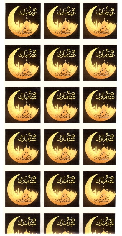 Lot de 18 autocollants "Eid Mubarak" bilingue (français/arabe) pour cadeaux musulman - Stickers autocollants carrés (45 mm) - REF. 28670 (1.90 €) - En Promotion à 0.95 €