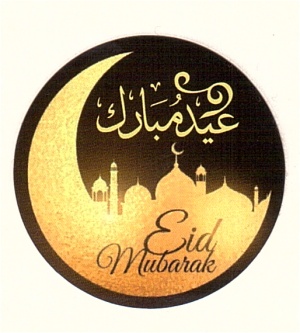 Autocollant "Aid Moubarak" bilingue (français/arabe - 6 cm) - Spécial pour cadeau fête musulmane de l'Aid - Etiquette Sticker Eid Mubarak - عيد مبارك - REF. 28640 (0.20 €)