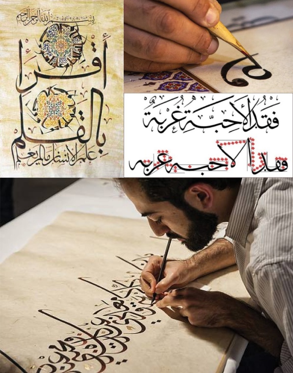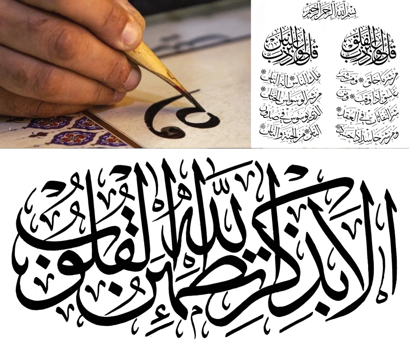 Le Calame est l'outil indispensable pour réaliser de belles calligraphies. Utilisé depuis des siècles par les scribes sur du papyrus au temps des Égyptiens de l'Antiquité, par les Grecs et jusqu'à nos jours, c'est avant tout la lettre arabe qui en coupant le bec au qalam va lui donner un riche avenir et amener une révolution stylistique. |