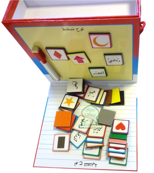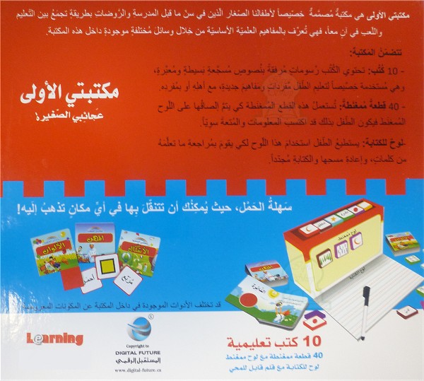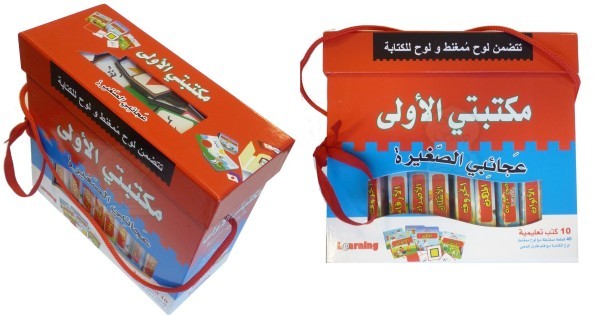 Ma Première Bibliothèque : un coffret d'éveil pour les 2 à 5 ans contenant une collection de 10 livres pour les petits, un tableau effaçable magnétisé et des formes magnétisés... pour l'apprentissage de la langue arabe et des premiers mots.