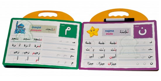 Avec "Ma petite ardoise des lettres arabes", apprends à écrire les lettres arabes, puis les mots. Grâce au feutre effaçable, tu peux t’entraîner autant qu’il te plaît. Il te suffit d’effacer et de recommencer !