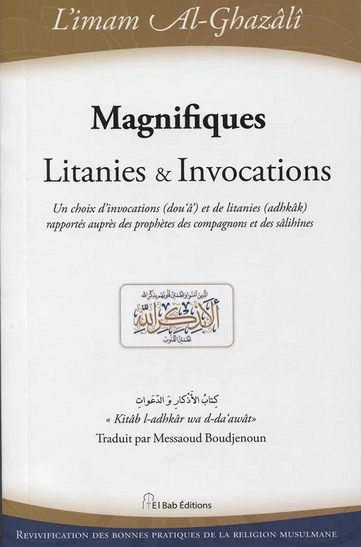 Un choix d'invocation (dou'a) et de litanies (adhkar) rapportés auprès des prophètes des compagnons et des salihines, de l'imam Al-Ghazâlî, Collection Revivification des Bonnes Pratiques de la Religion Musulmane, Traduction du livre : «Kitâb l-adhkâr wa d-da'awât » ( كتاب الأذكار و الدعوات ), Traduit par Messaoud Boudjenoun